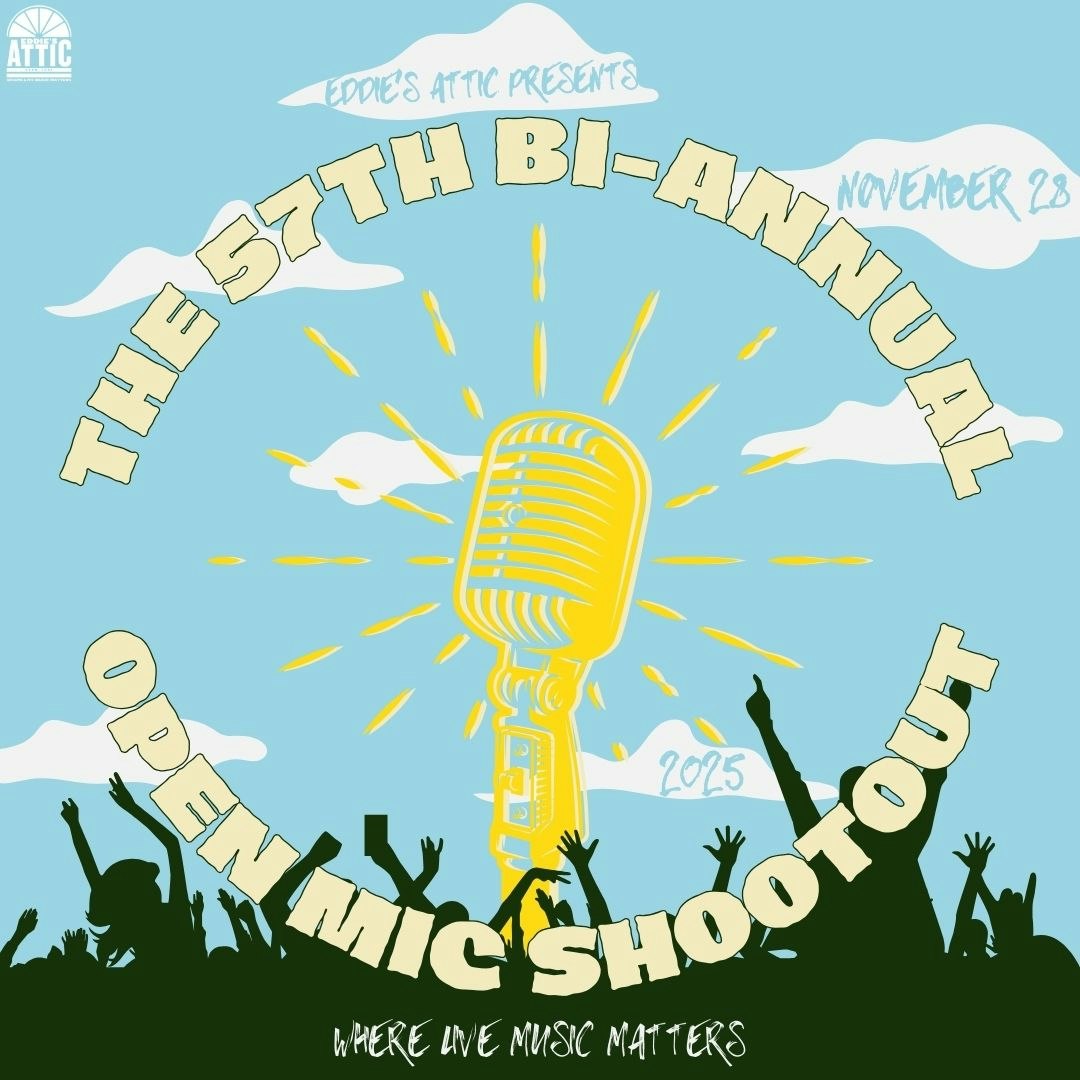 Eddie’s Attic 57th Bi-Annual Open Mic Shootout ! Join us Friday, November 28th for our 57th Bi-Annual Open Mic Shootout! This’ll be a night full…